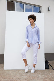 Hose in 7/8 Länge aus super leichter und weicher kbA - Baumwolle/ GOTS zertifiziert & OEKO-TEX Standard. Nicht durchscheinend ist es der perfekte Begleiter für den Sommer. Mit Gummizug-Bund, seitlichen Eingrifftaschen und zum Krempeln vielseitig einsetzbar!