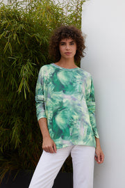 Pastellgrün-Tönen mit beige-grau Tönen im Mix, auf leichter und weich fließender Viskose. Die perfekte Kofferware durch den pflegeleichten Stoff, knittert nicht und fällt wunderschön. Easy to wear, easy to care.