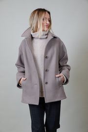 Cabanjacke aus edlem Wollstoff. Zeitlos in Farbe und Design, in aufwendiger Verarbeitung gefertigt, ist diese Jacke mit Leistentaschen und großem Kragen herrlich lässig-elegant, der Ärmel in guter Weite und somit perfekt über die modischen Pullover zu ziehen. Der edle und neutrale Fango-Ton lädt vielfältig zum Kombinieren ein!