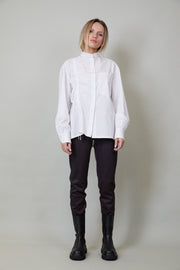 Extravagante Hemdbluse aus Bio-Baumwolle mit minimalem Stretchanteil. Lässig in der Länge, verspielt im Detail, die Raffung auf der rechten Seite mit Bindebändern zum individuellen anrüschen. Ärmelweite am Saum angekräuselt mit der breiten Manschette und der übergroßen aufgesetzten Tasche, eine Bluse für den besonderen Look!