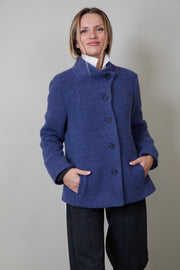 Jacke mit A-Linien Schnittführung in grober Strickart aus edlem Wollemix. Ein Highlight in Design und Schnitttechnik, klassisch-elegant in der Schnittführung, sportlich in der Stoffwahl. Zeitlos in Farbe und Design, in aufwendiger Verarbeitung gefertigt, ist diese Jacke mit schmalen Leistentaschen und besonderem Kragen wunderbar tragbar und lädt vielfältig zum Kombinieren ein!
