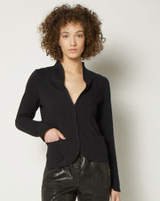 Optisch ein Blazer, gefühlt ein Shirt, super bequem kommt diese Jacke im Slim-Fit daher. Leicht gerundeter Stehkragen, verdeckte Knopfleiste, aufgesetzte Taschen.
