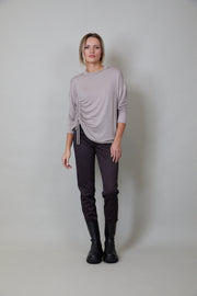 Langarmshirt aus weichem, wunderbar fließendem Jersey in 100% Bambusviskose-Qualität mit Silktouch, mit schönem Design-Detail. Die Schnittführung in angenehmer Weite, besondere Optik durch die Raffung. Ein schmaler, doppelter Tunnelzug mit Band zum individuellen raffen. Der Stoff sorgt für ein angenehmes Gefühl auf der Haut, sieht sehr edel aus und ist vielseitig einsetzbar und immer Besonders!
