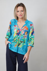 Der Frühling und der Sommer mit karibischem Flair! Eyecatching Bluse mit farbenfrohem Print aus herrlich weicher Viskose. Die Schnittführung mit schönen Details ist luftig und körperumspielend. Das Material ist edel und der Print exklusiv, die Stoffqualität lädt ein zum Anziehen - und nie wieder ausziehen!!!